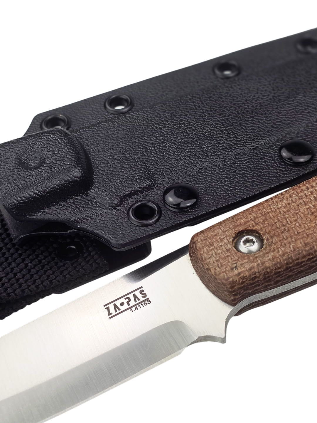 The knife features a blade with a classic working profile and a flat grind, making it highly versatile in use. The blade is made from 1.4116S stainless tool steel, offering very good corrosion resistance and good wear resistance.