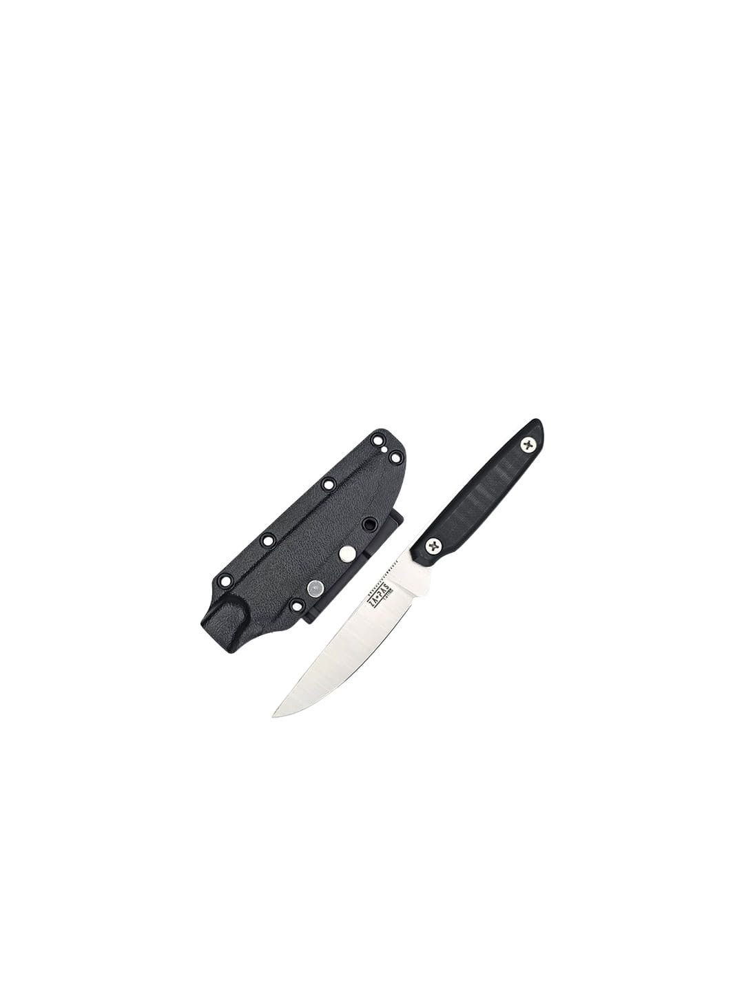 The handle scales are made from durable black G10 composite. The scales fit tightly to the knife construction and are secured with stainless steel screws, ensuring stability and durability during intensive use.