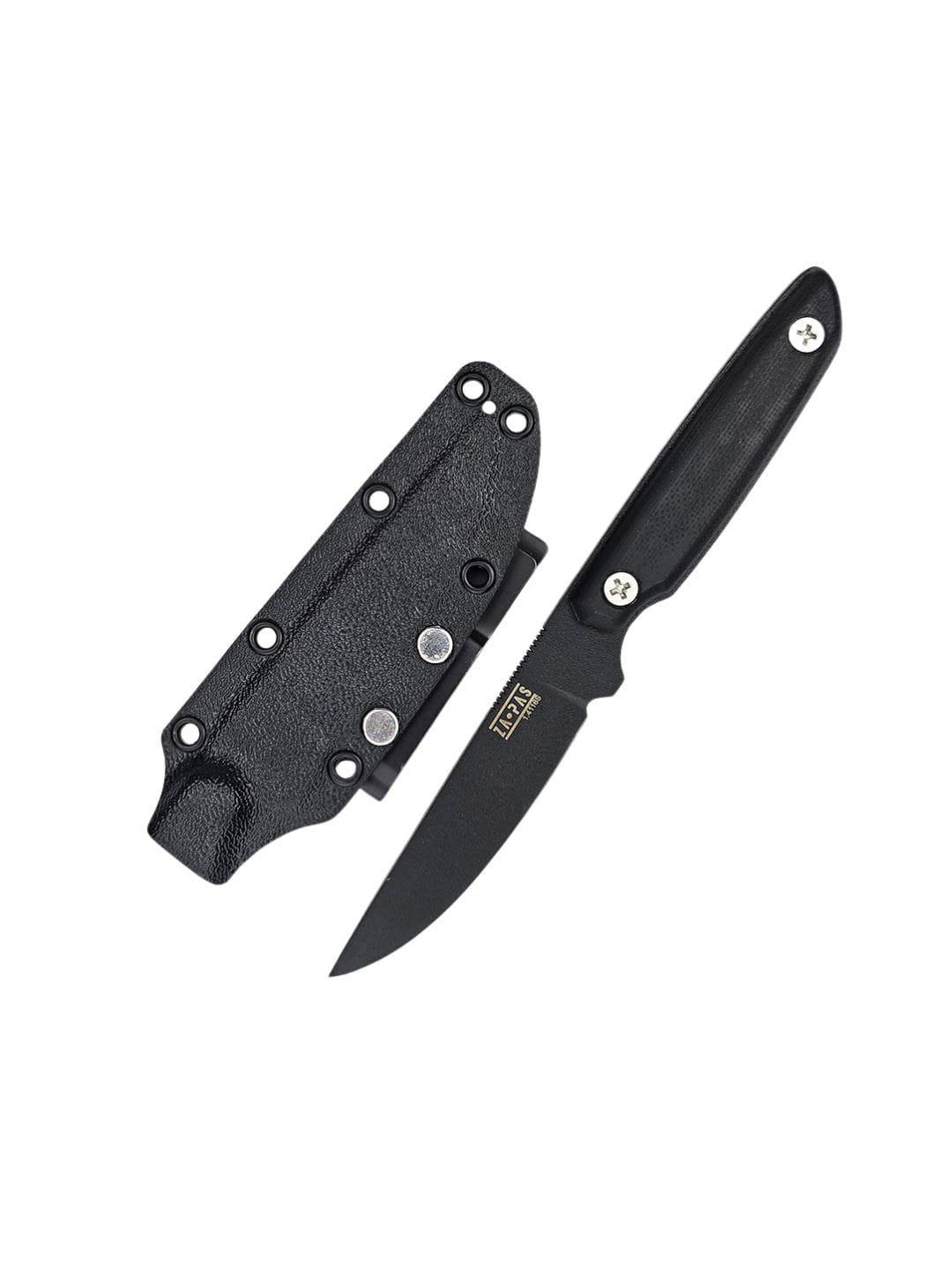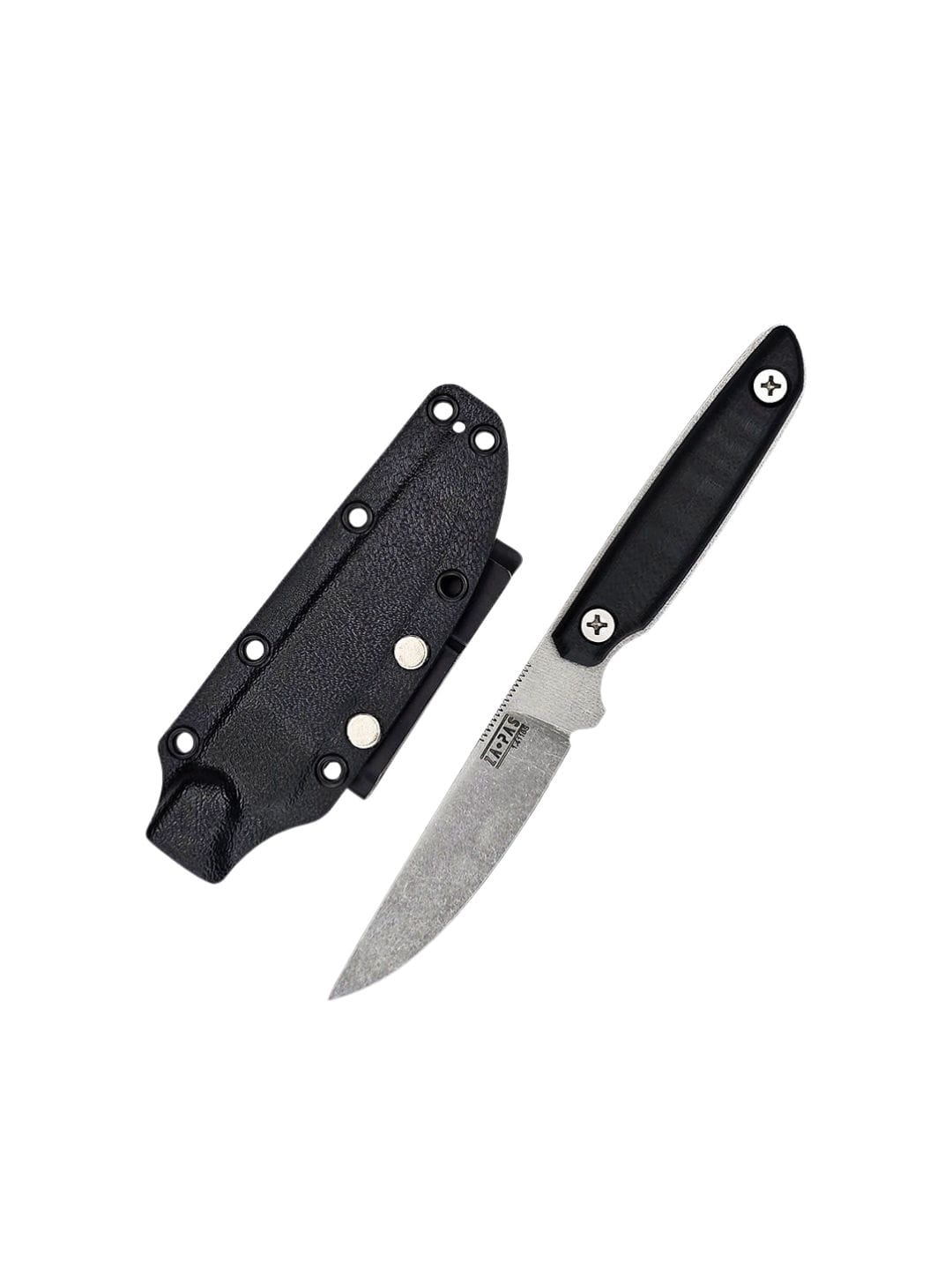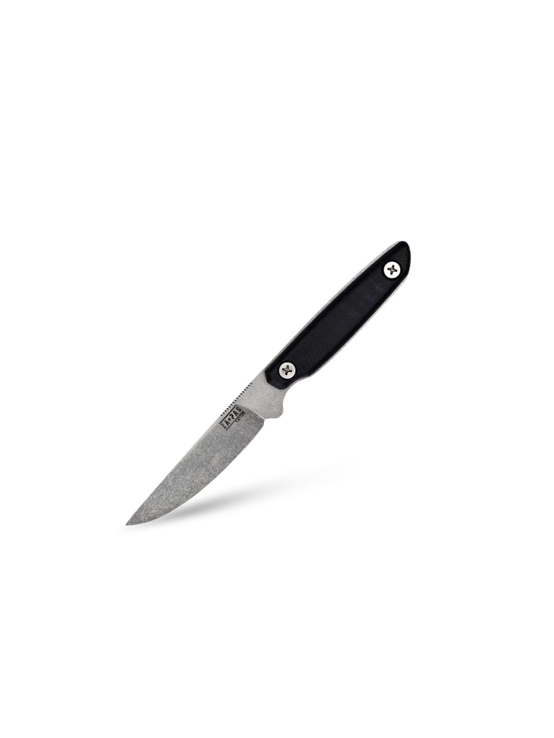 This steel should not be confused with the popular 1.4116 (X50CrMoV15). The steel used in this model contains alloying elements such as vanadium, molybdenum, and nitrogen, allowing it to reach a hardness of 59–61 HRC after heat treatment. In practice, it offers properties comparable to the popular stainless steel Sandvik 14C28N. The high grind and thin cutting edge ensure excellent cutting performance while remaining easy to resharpen.