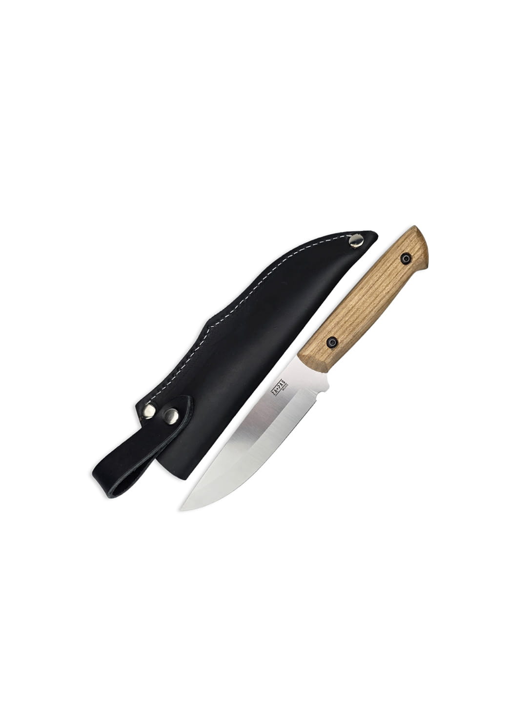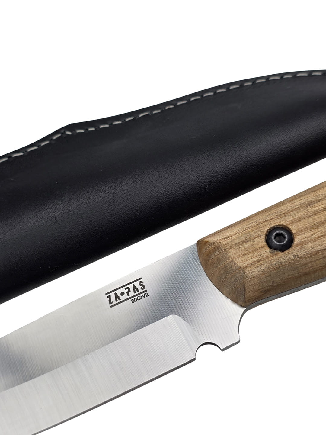 The knife has a flat-ground blade with a working drop point profile, extremely versatile in use. The blade material is 80CrV2 tool steel, carbon steel with alloy additions such as Manganese and Vanadium, which are responsible for increased wear resistance. Hardened to 59/60 HRC