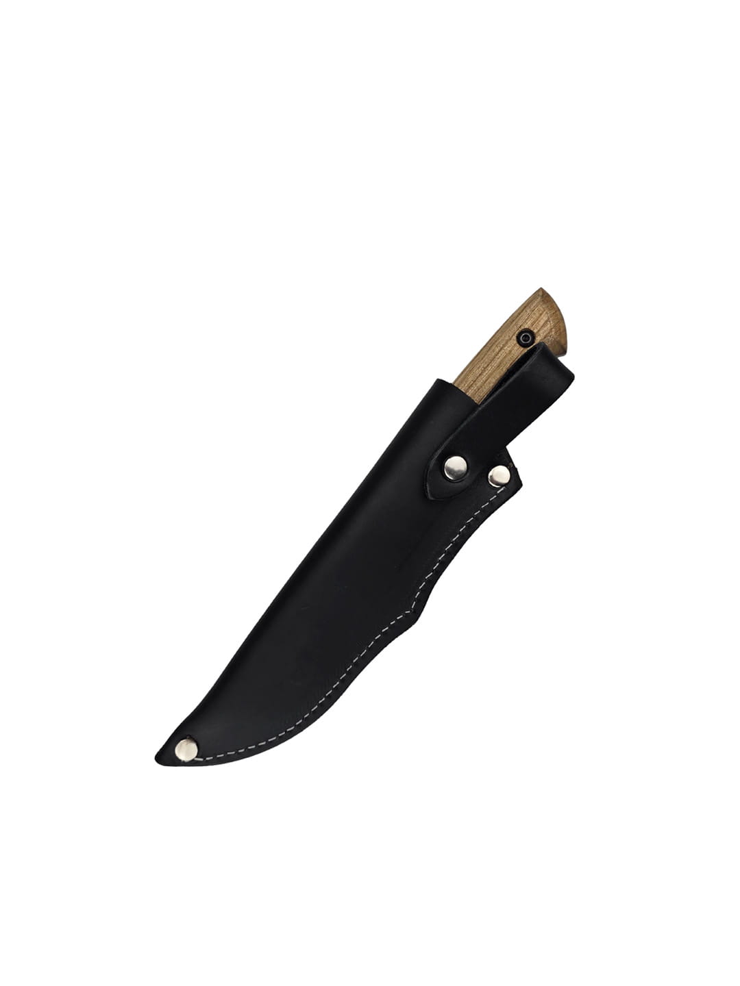 Sheath - hand-made of natural black leather. Decorated with trim and riveted with silver rivets so that the sheath has an elegant appearance and is durable.
