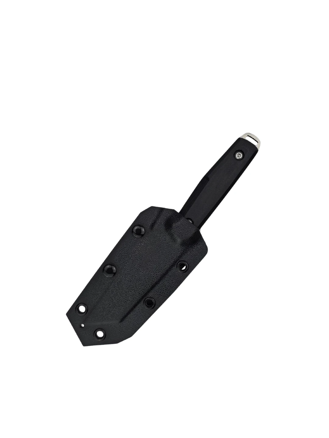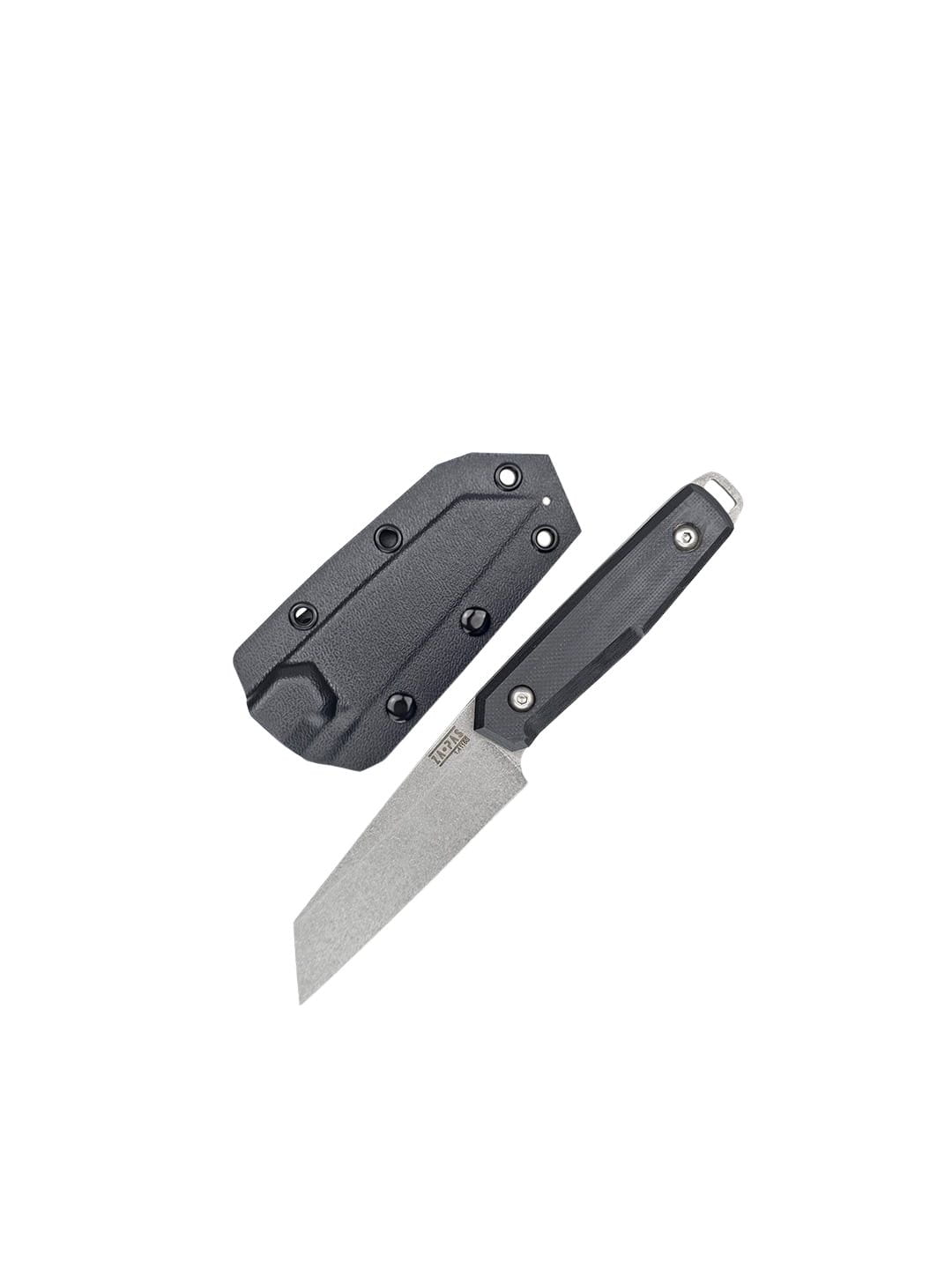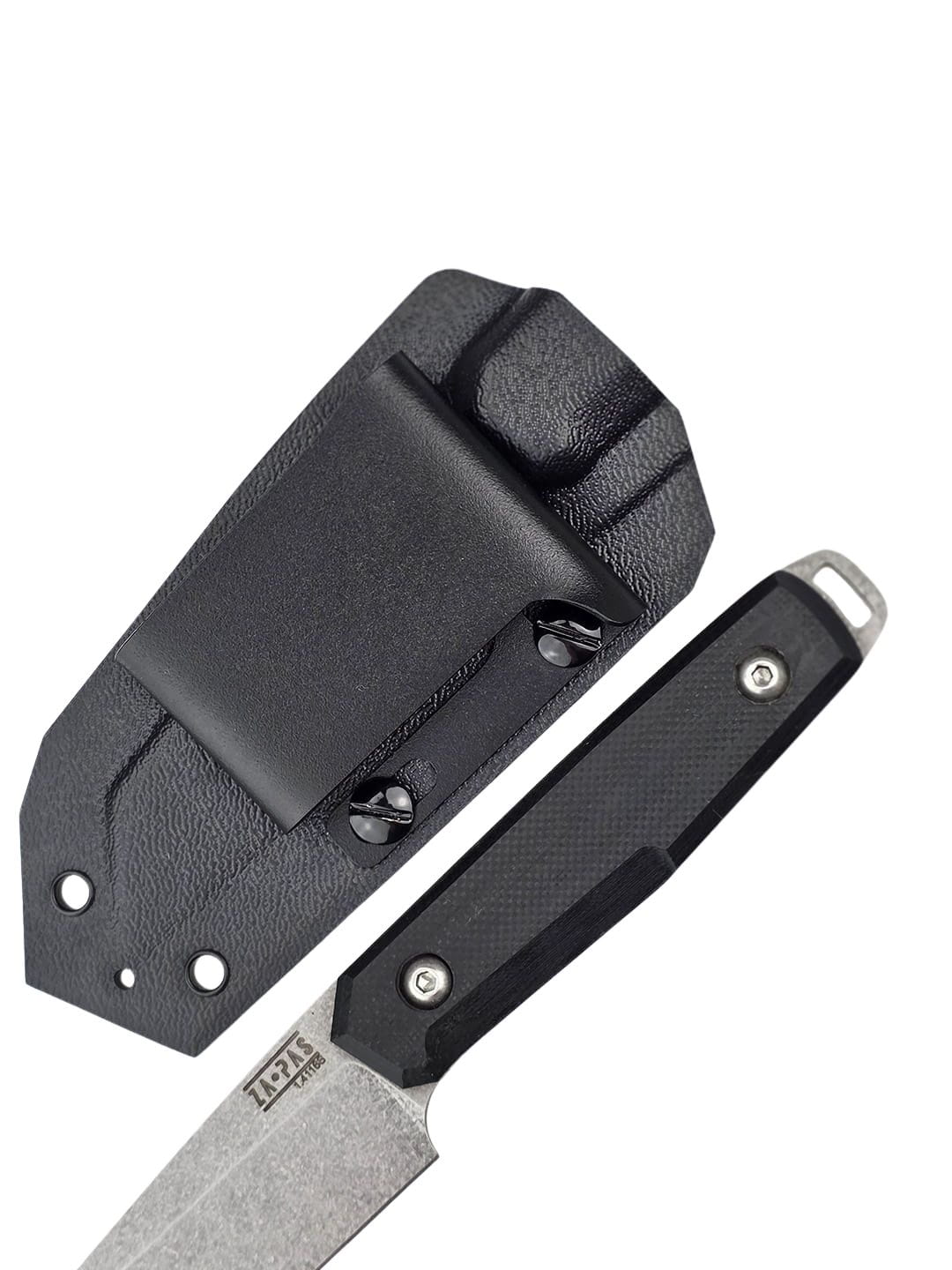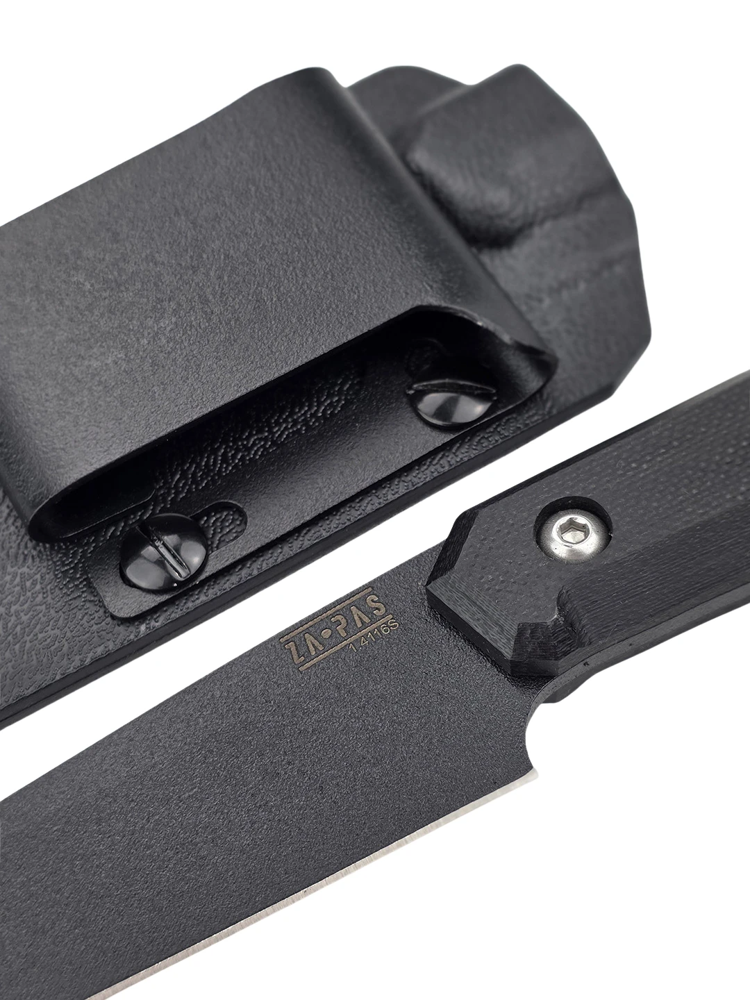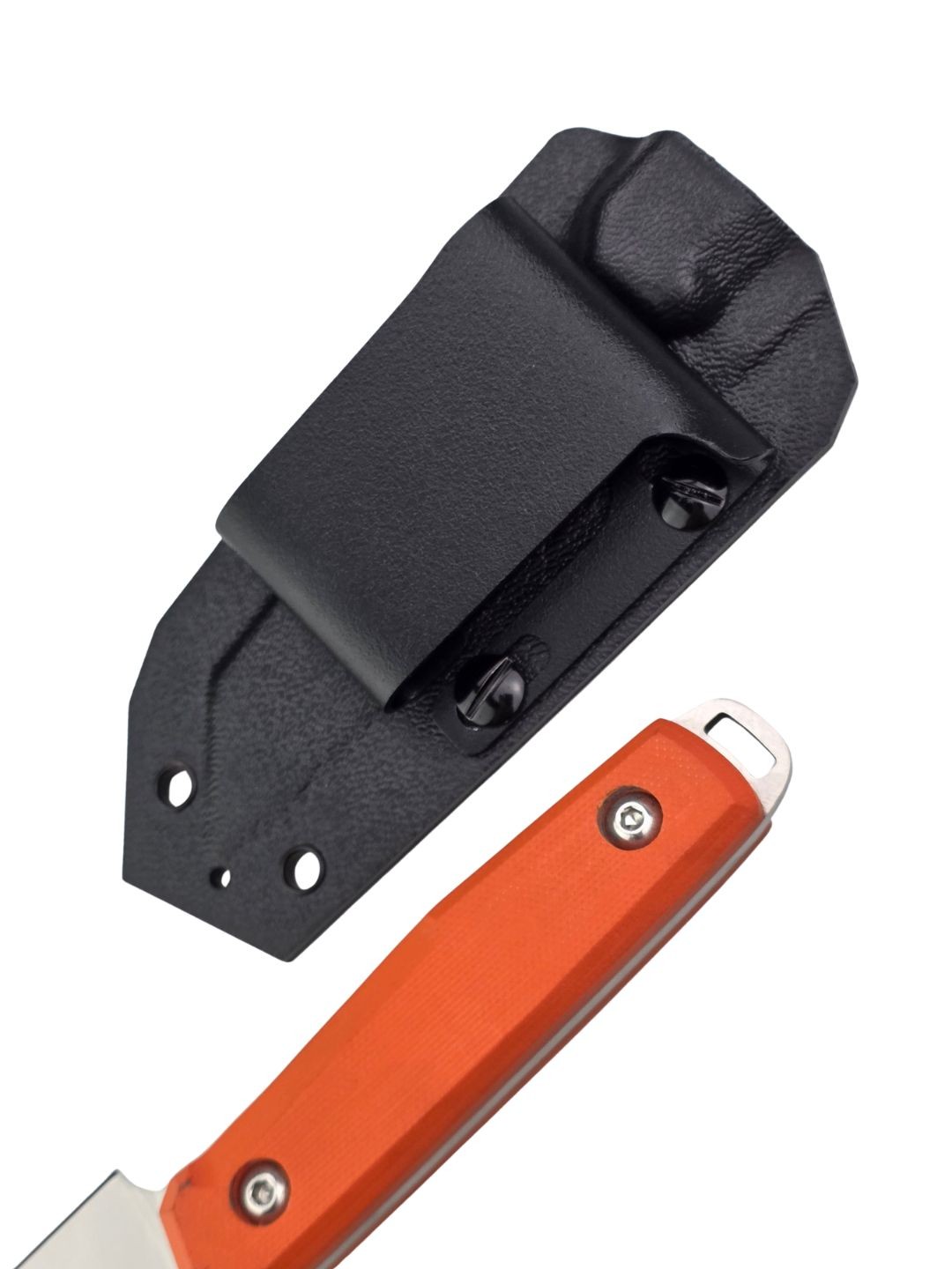 The knife comes with a durable Kydex sheath, allowing both vertical and horizontal carry thanks to a custom-designed stainless steel mount.