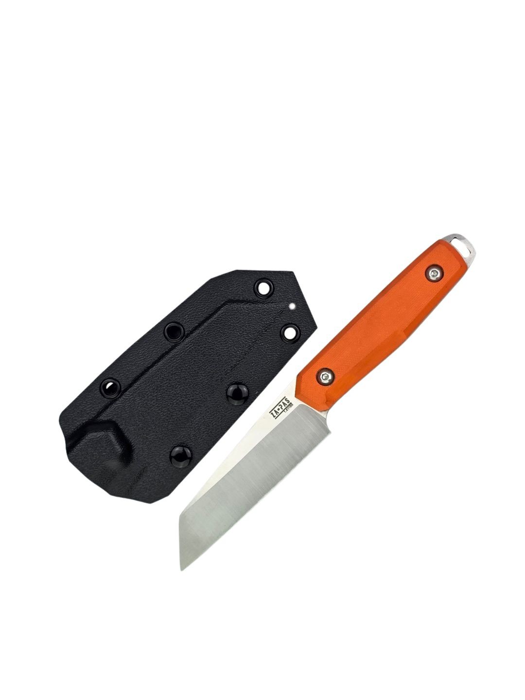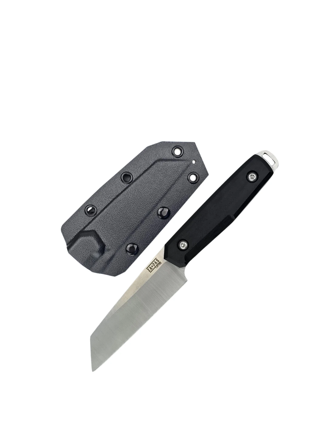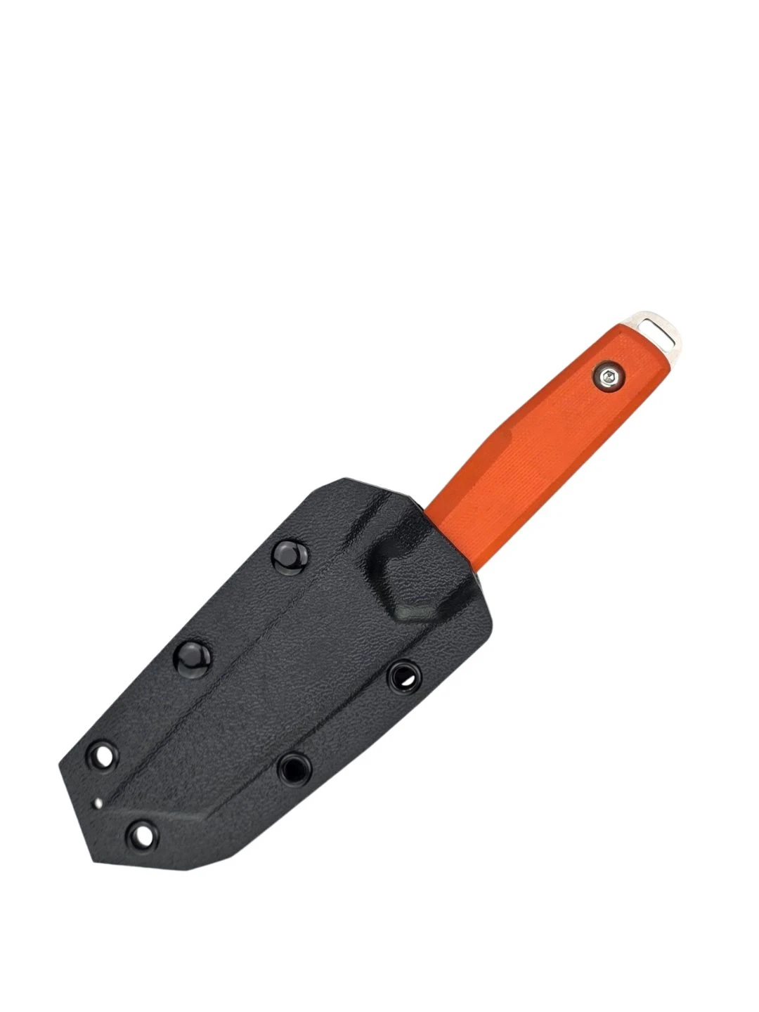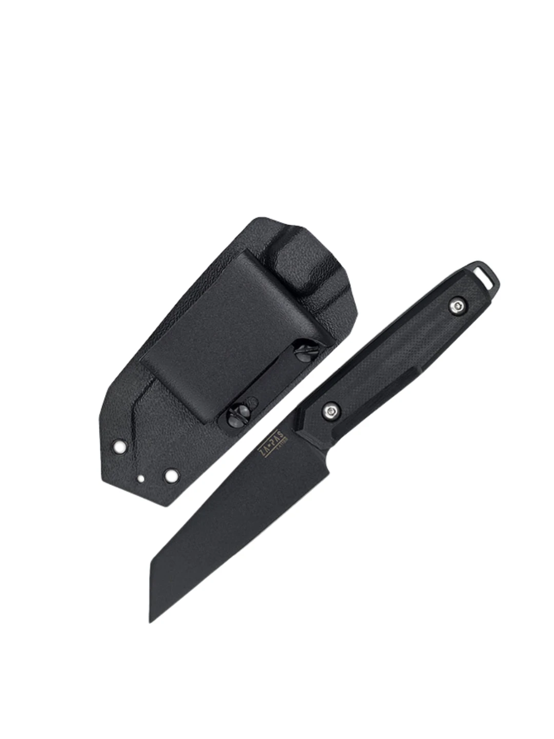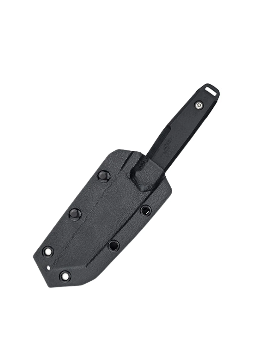 The knife comes with a durable Kydex sheath, allowing both vertical and horizontal carry thanks to a custom-designed stainless steel mount.