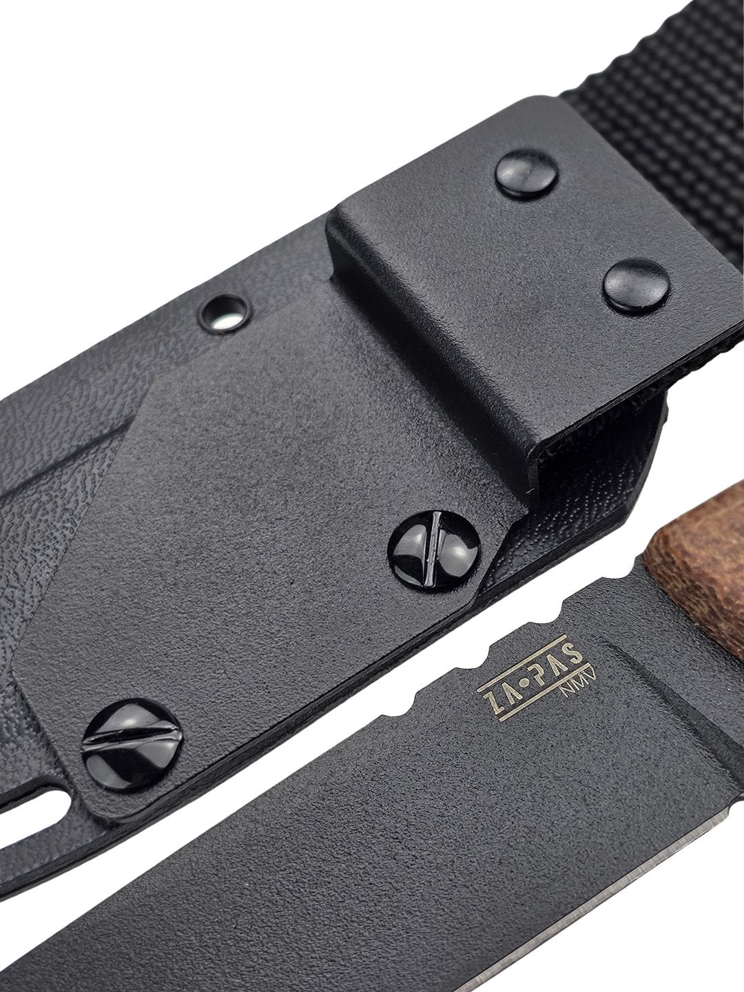 The blade is made from NMV tool steel, known for its very high impact toughness and good resistance to dulling. Composition-wise, it outperforms popular carbon steels such as 80CrV2 and 1095.