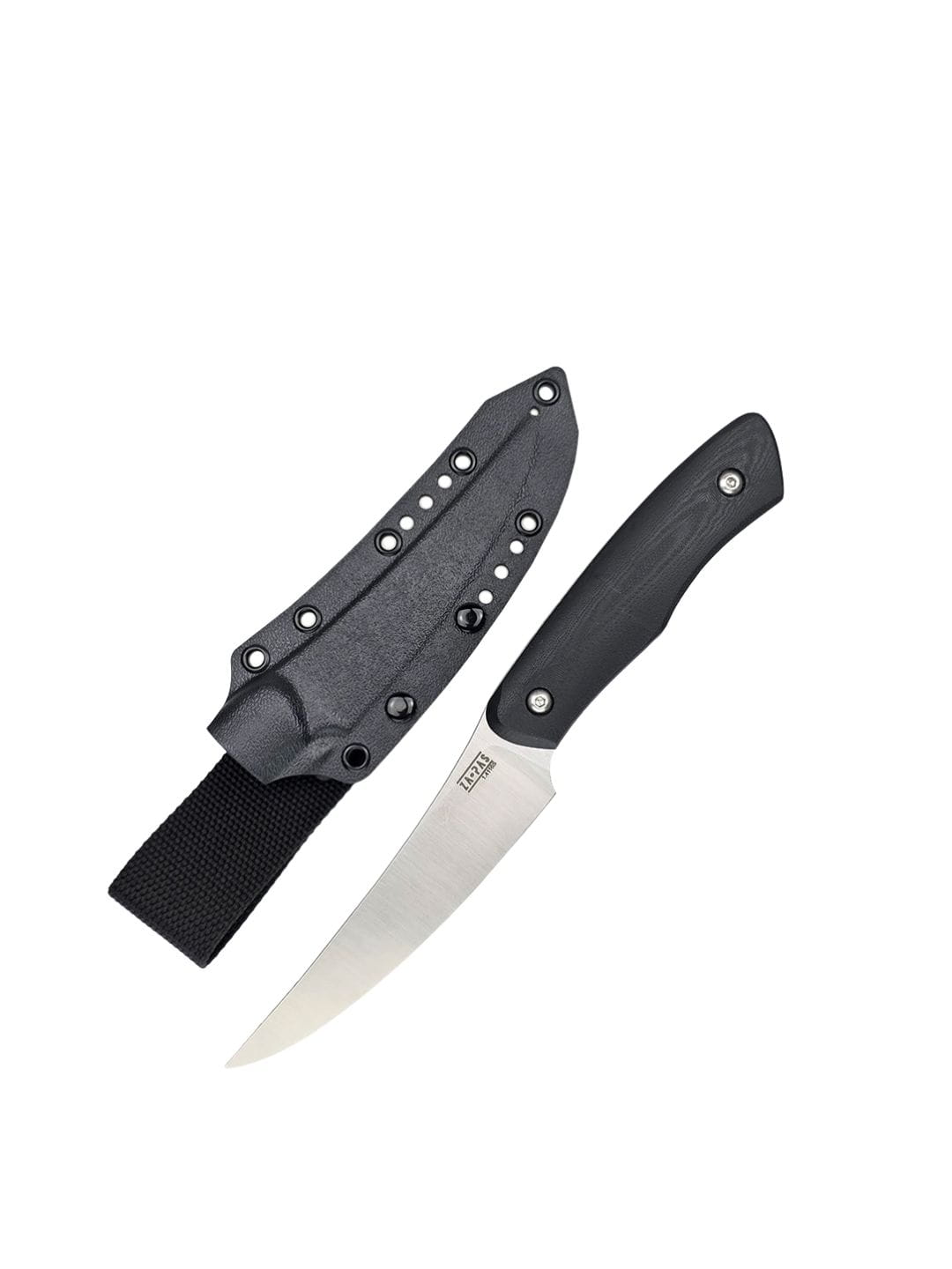 The knife comes with a durable Kydex (ABS-type) sheath, allowing vertical carry using a black belt attachment.