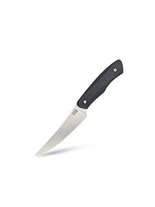 The handle scales are made from durable black G10. They are fitted to the knife in a full-tang construction and secured with stainless steel screws.
