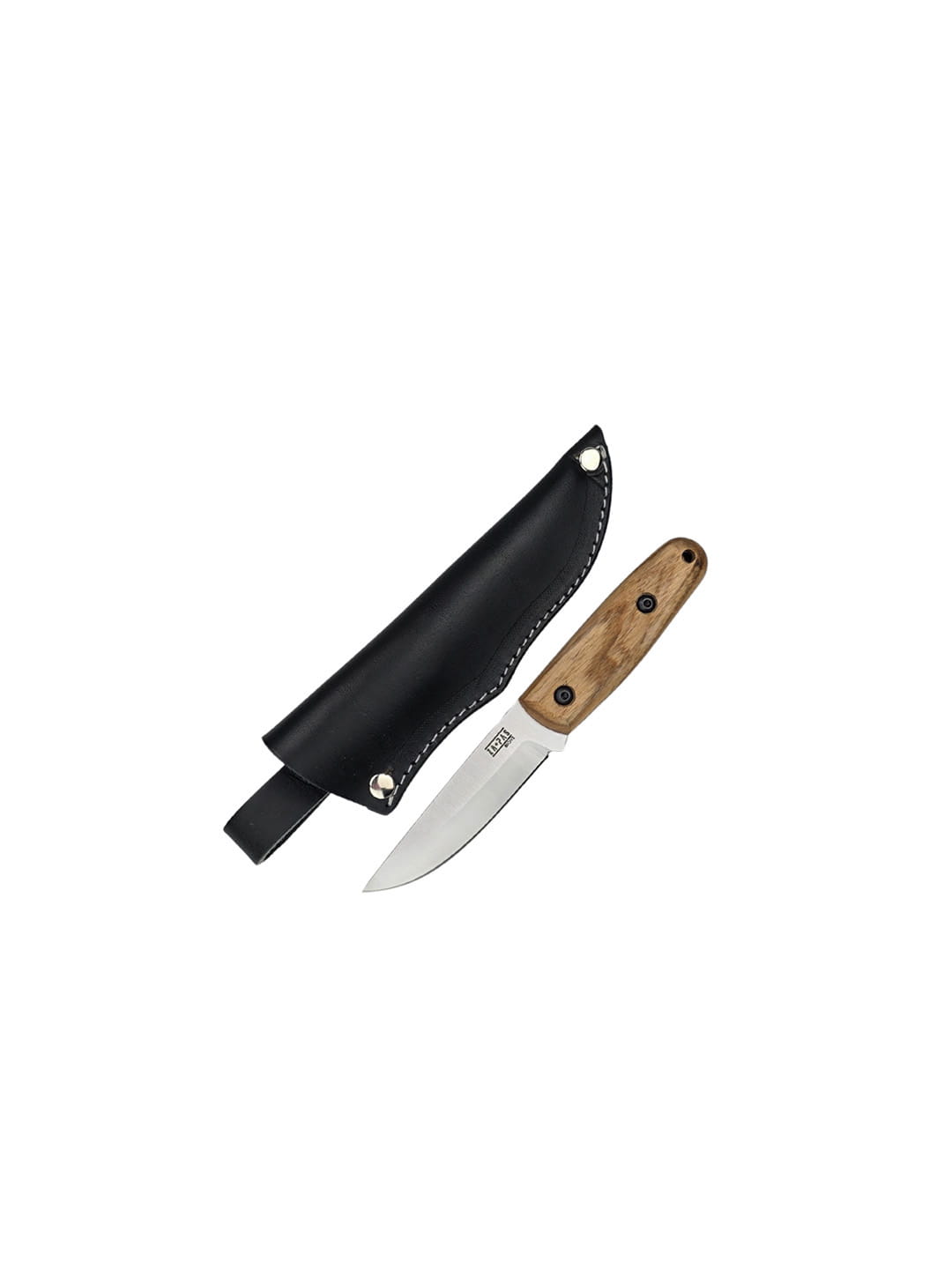 The knife comes with a hand-stitched natural leather sheath.
