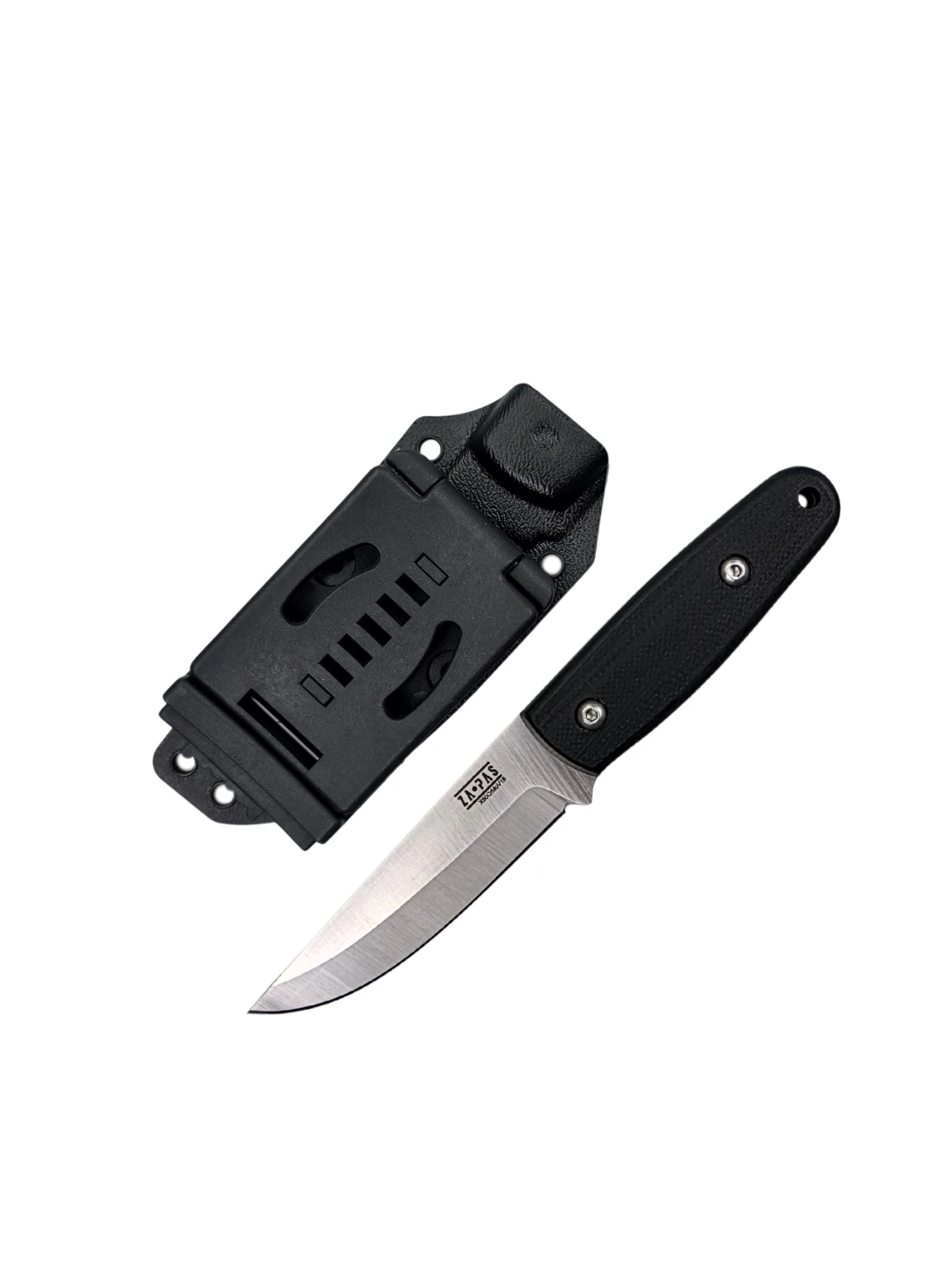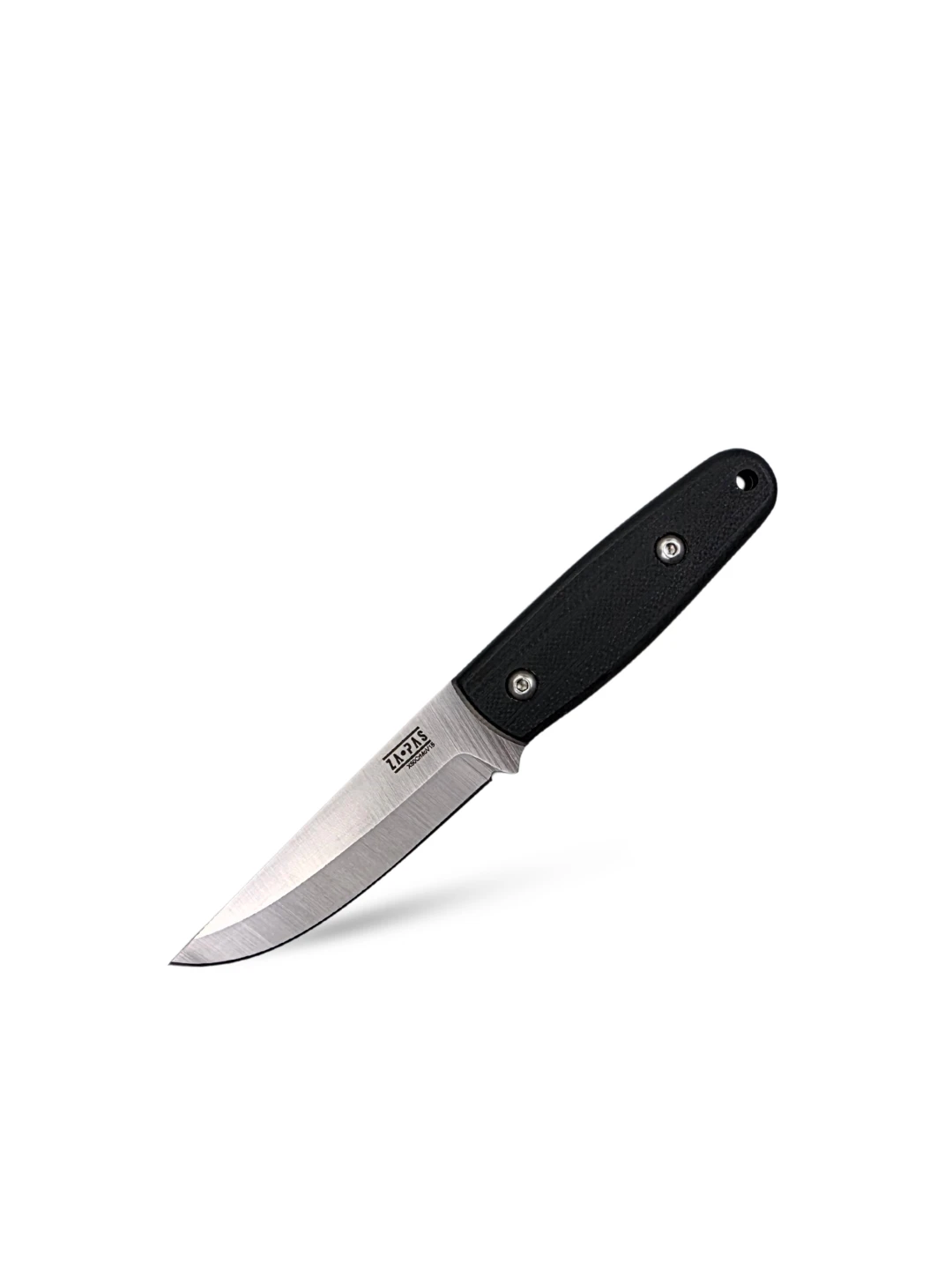 The knife features a flat-ground blade with a working drop point profile, making it extremely versatile in use. The blade material is stainless tool steel X50CrMoV15, characterized by very good corrosion resistance and good edge retention.