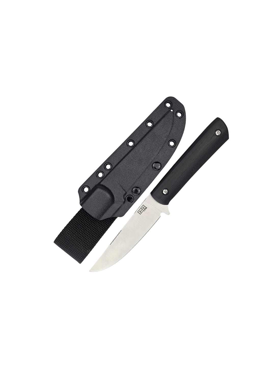 The handle scales are made from durable black G10 composite. The scales fit tightly to the knife construction and are secured with stainless steel screws, ensuring stability and durability during intensive use.