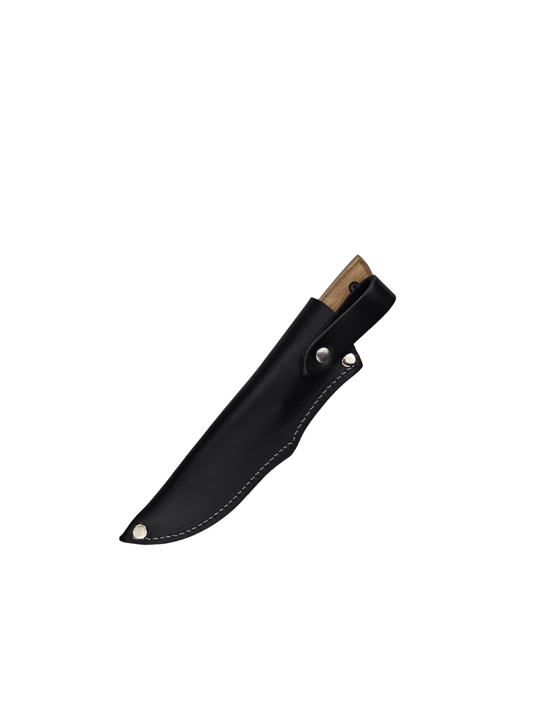 Made from natural brown cowhide leather, reinforced with brass rivets and decorative stitching. Its classic style pairs well with outdoor and hunting knives.