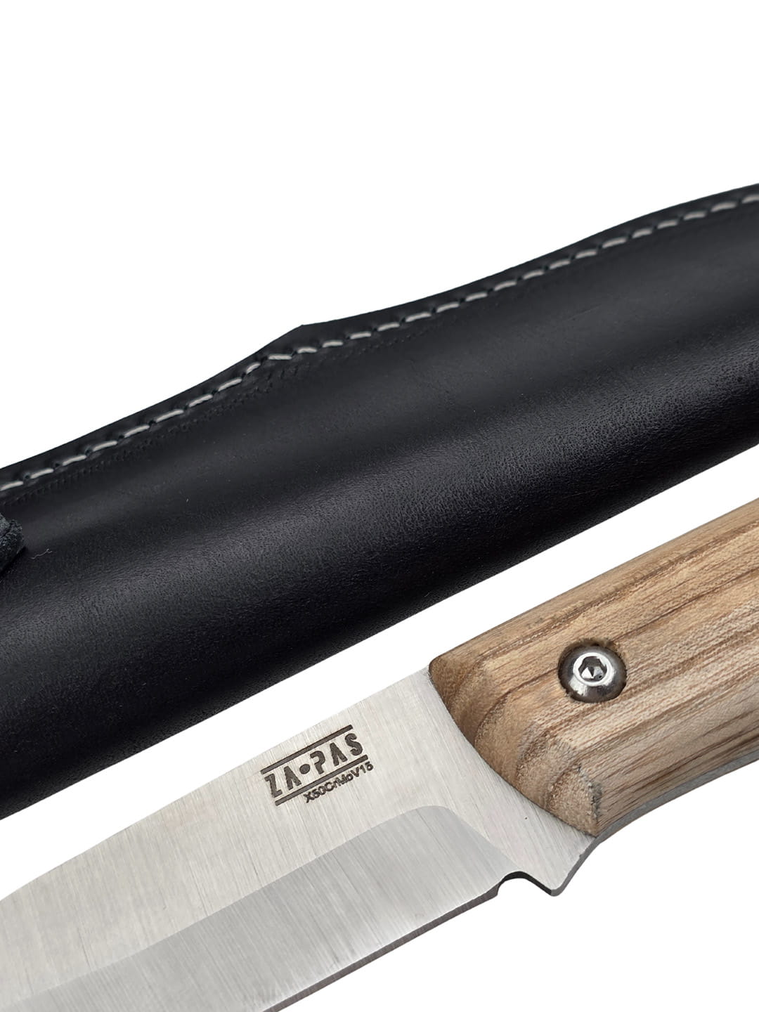 The handle scales are made from ash wood, known for its distinctive grain pattern. They are treated with tung oil, one of the best natural oils used for wood protection.