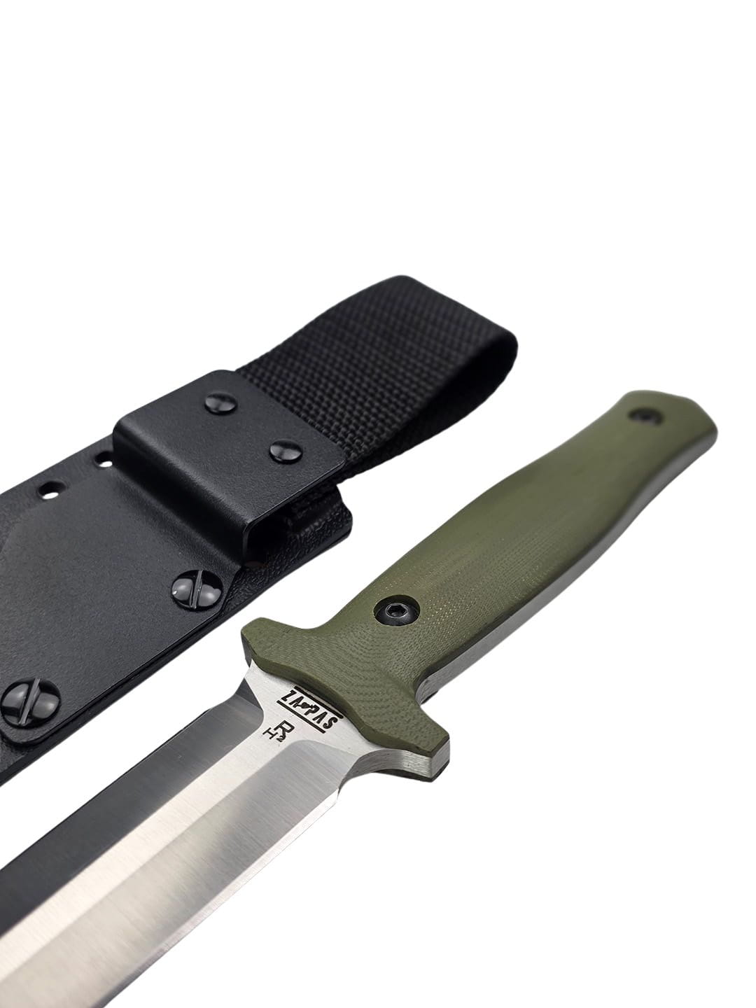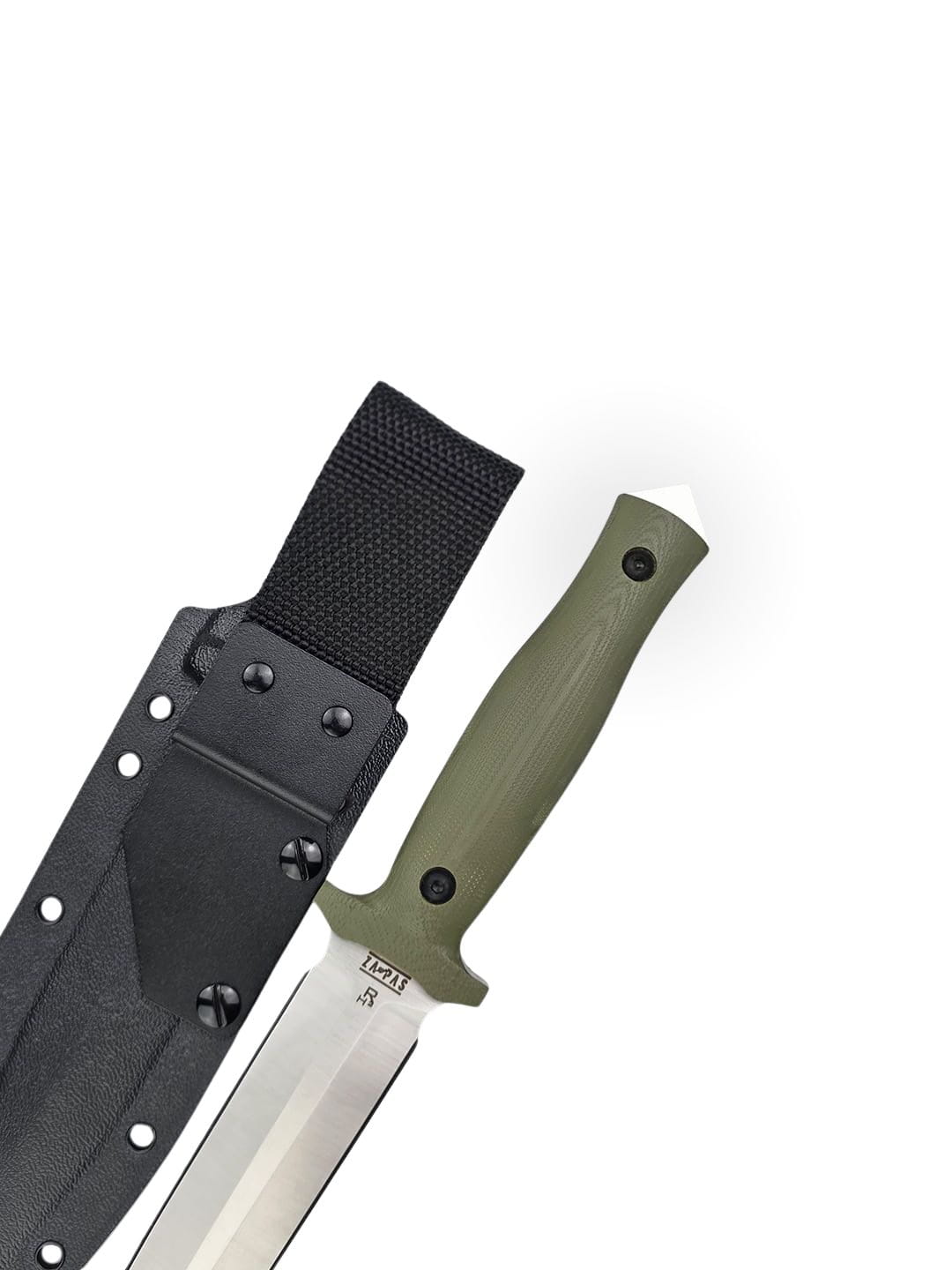 Handle: scales made of olive green G10