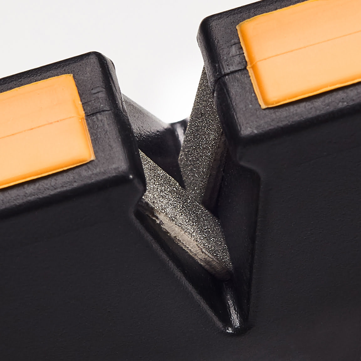 A versatile tool that allows for effective knife sharpening thanks to four different abrasive surfaces: diamond #320 and #600, ceramic, and tungsten carbide.