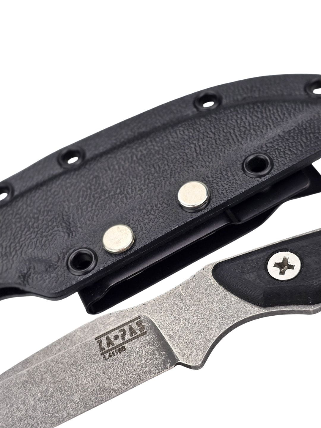 The handle scales are made from durable black G10 composite. The scales fit tightly to the knife construction and are secured with stainless steel countersunk screws, ensuring stability and durability during intensive use.