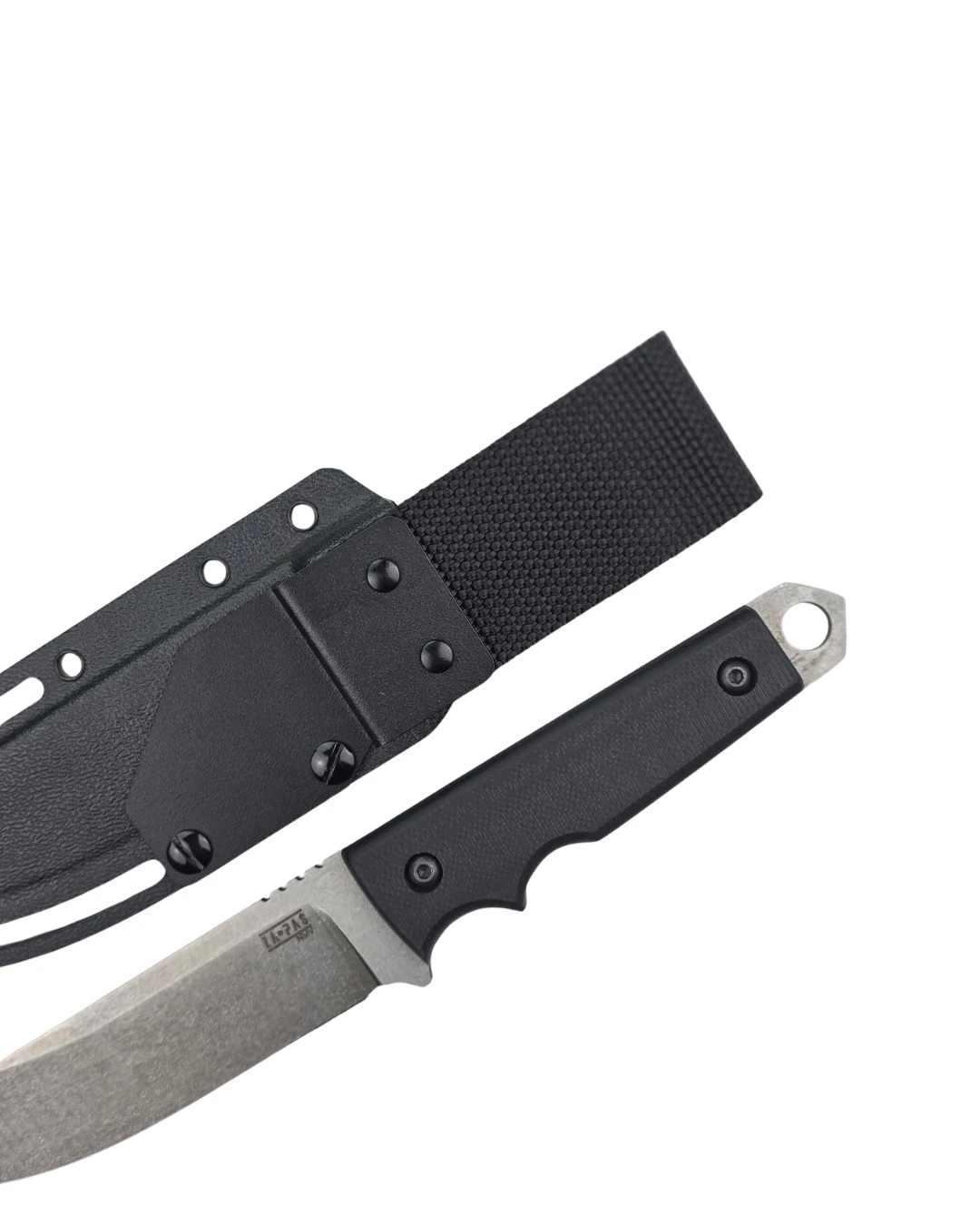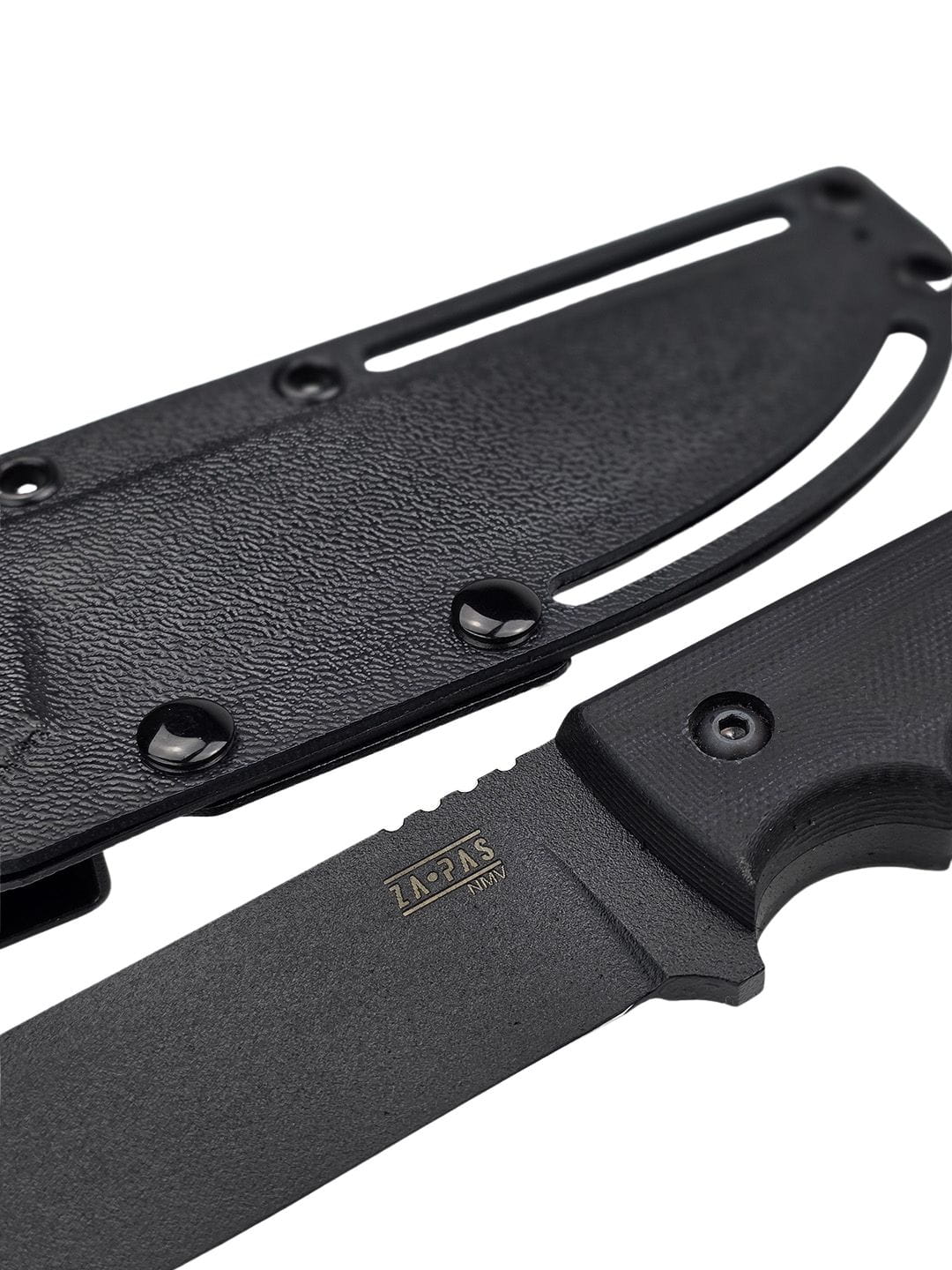 NMV steel can reach hardness up to 63 HRC, but in this model it has been heat-treated to 58–59 HRC, to achieve an optimal balance between durability and edge retention.