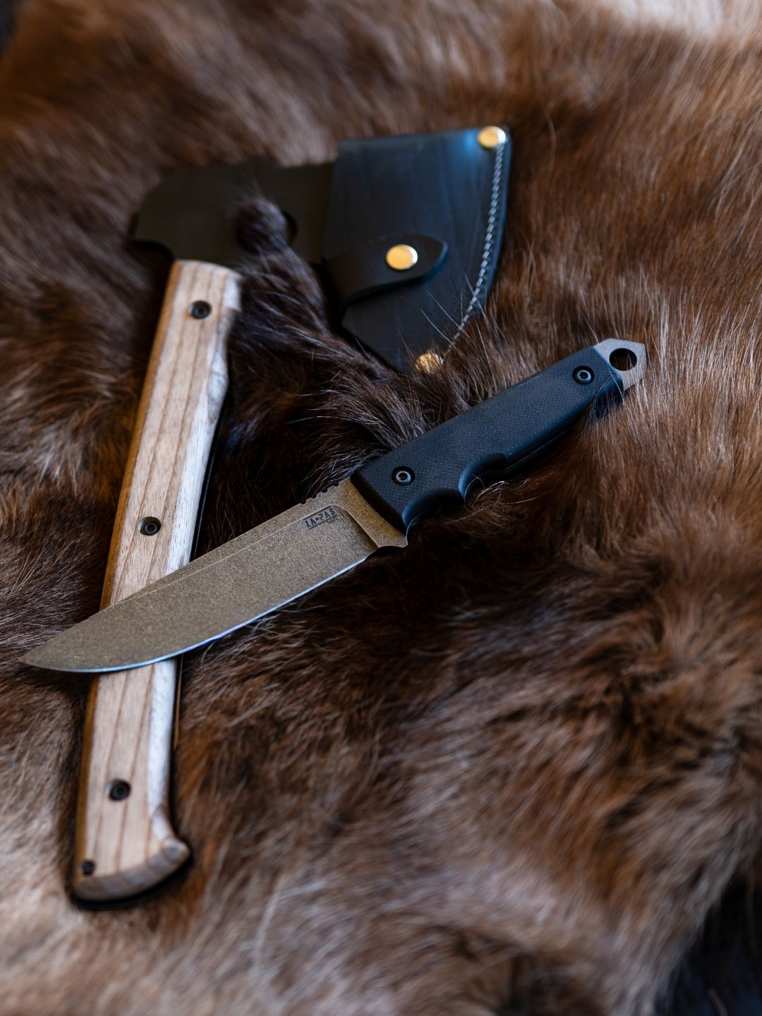 Handle: scales made of black G10 or brown micarta