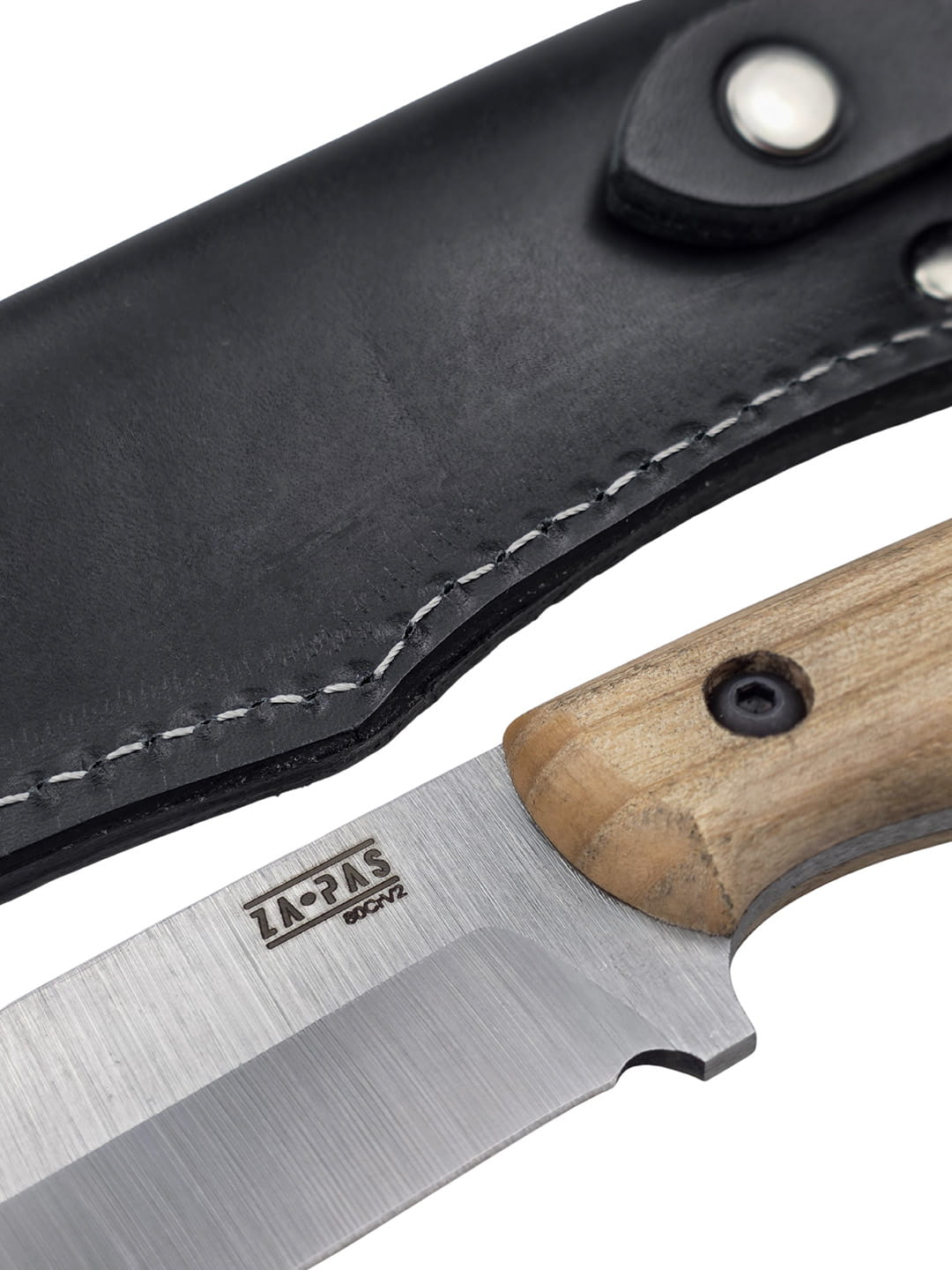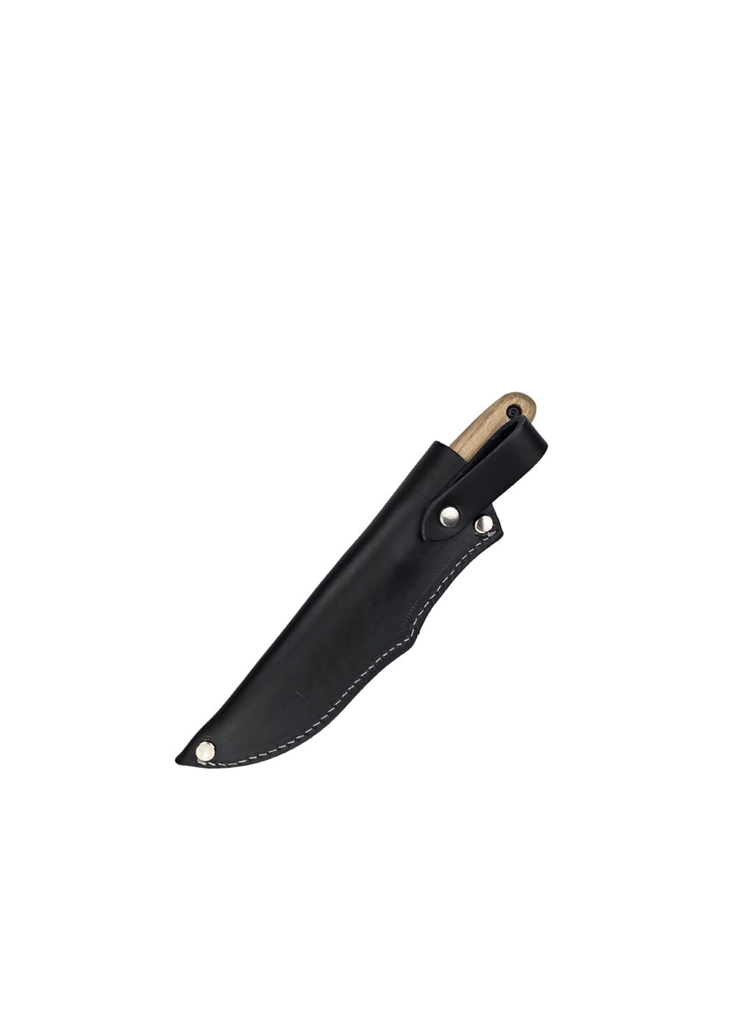 The knife comes with a hand-stitched natural leather sheath.