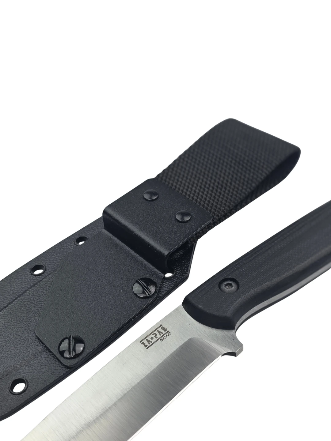 - Steel: 80CrV2 (58–60 HRC), finish: machine satin