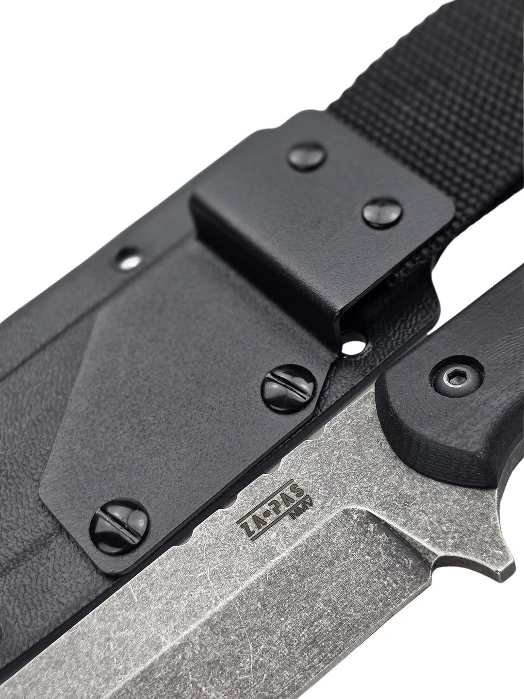 Nóż wyposażony jest w wytrzymałą pochwę z Kydexu, która umożliwia kilka sposobów montażu: